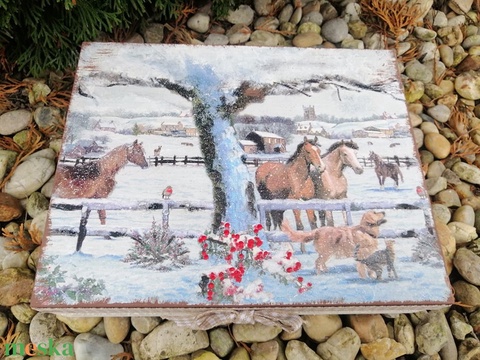 - Technika: decoupage, transzfer és szalvétatechnika, festett tárgyak