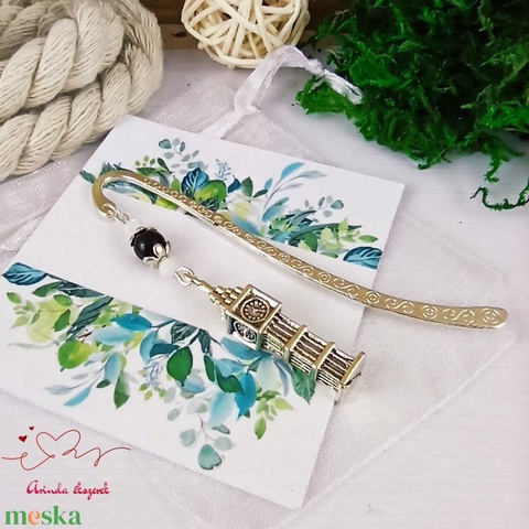 Big Ben könyvjelző fekete és fehér gyöngyökkel, valamint tibeti ezüst kiegészítőkkel díszítve.