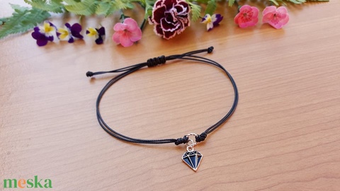 - Anyaga: viaszos zsinór, összekötő karika, gyémánt formájú fityegő