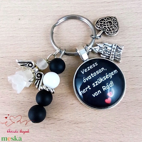 Vezess óvatosan, mert szükségem van Rád feliratos üveglencsés kulcstartó táskadísz
