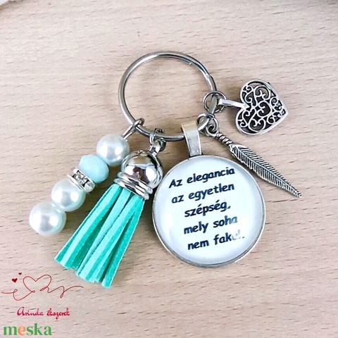 Az elegancia az egyetlen szépség feliratos menta bojtos üveglencsés kulcstartó táskadísz