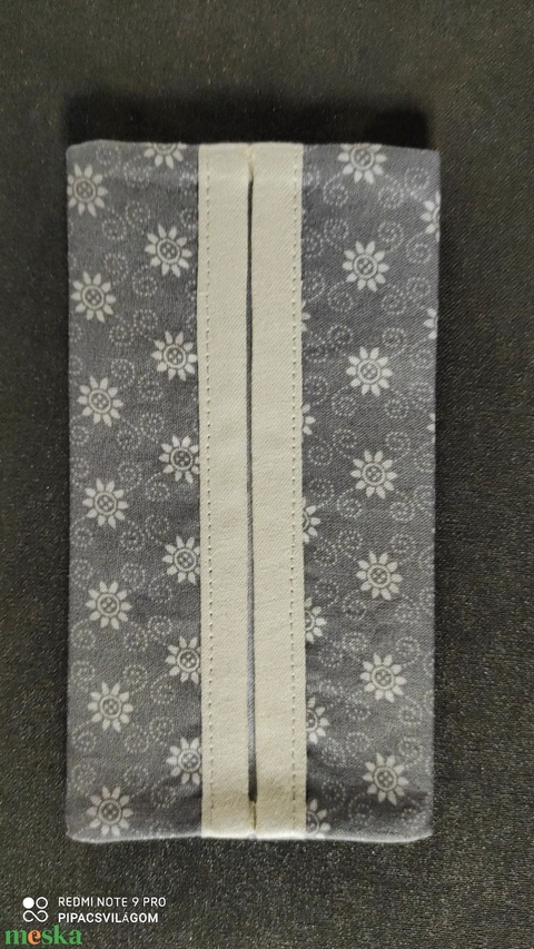 Szürke virágos papír zsebkendő tartó
