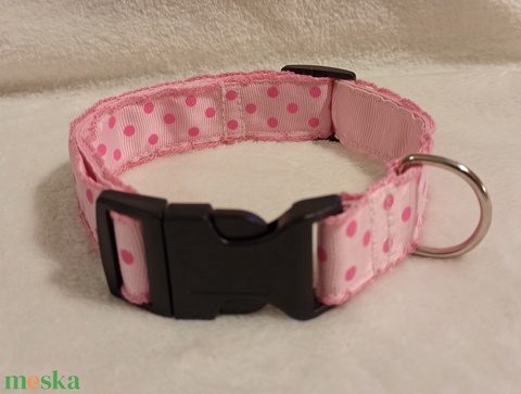 Rózsaszín alapon magenta pöttyös kutyanyakörv