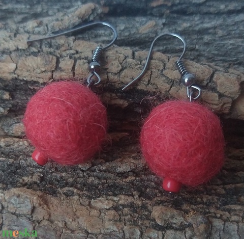 Sötét lazac csepp - nemezelt fülbevaló gyönggyel