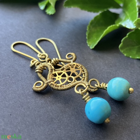 Uránusz Hercegnő - sárgaréz türkiz fülbevaló