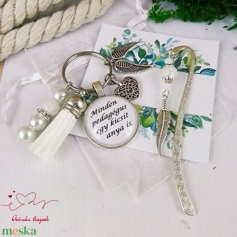 Minden pedagógus egy kicsit anya is feliratos üveglencsés kulcstartó könyvjelző szett ballagásra évzáróra pedagógusnapra