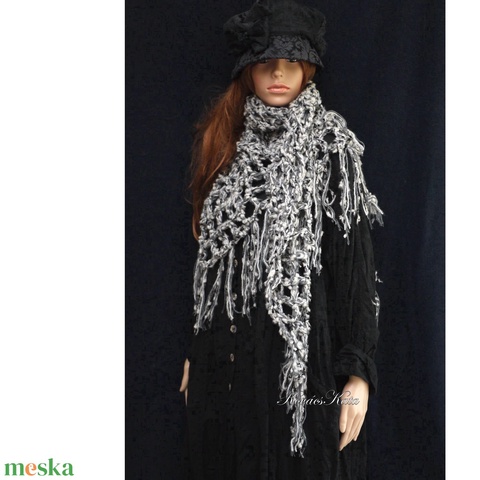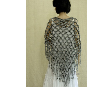 BOSZI-KENDŐ / szürke gyapjú-mix - trendi horgolt vállkendő