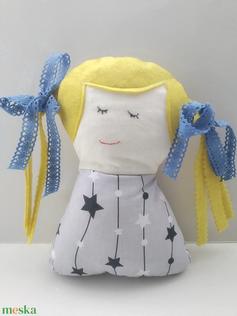 Szőke Tündérlány - Csillaglány - kislány tündér baba - copfos angyal baba - rongybaba - textil baba - Angyal