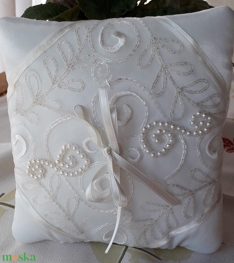 - Anyaga: szatén selyem, himzett organza, szalag, gyöngy