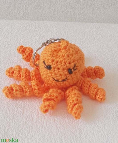 Horgolt narancssárga polip kulcstartó, táskadísz