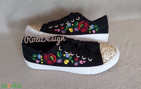 Kalocsai virágos tornacipő, kézzel hímzett 37-es méret