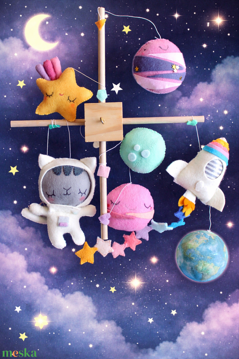 Babaforgó űrcicával csillaggal bolygóval és űrhajóval egyenesen Mancsicsi piciny műhelyéből