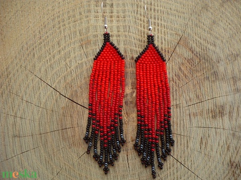 Fekete-piros színátmenetes "láva" gyöngy fülbevaló