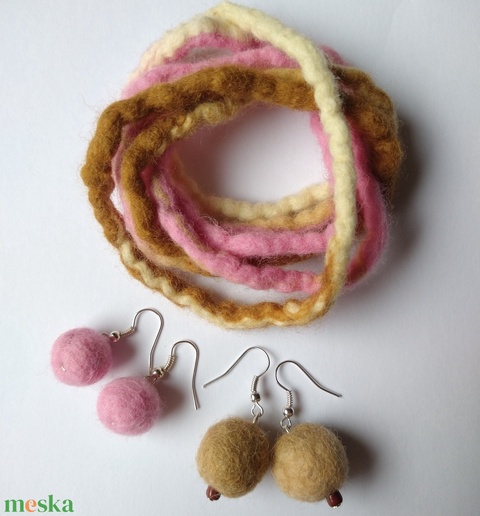 Púder ékszerszett - nemezelt karkötő és fülbevalók