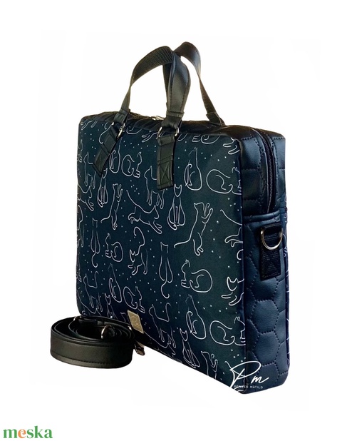 - Anyaga: designer mintásextilbőr, steppelt textilbőr, cipzár, fémkellékek, pamutvászon, táskamerevítő, vatelin, heveder