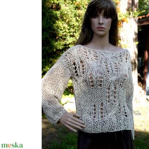LOTTE - kézzel kötött rusztikus pulóver / bézs KÉSZLETEN