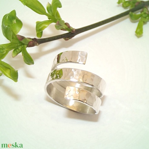 Csavart, kalapált, női ezüst gyűrű, állítható (VCSA.14)