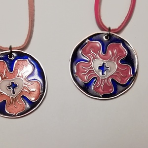 - Anyaga: vörösréz, ékszerzománc, zsinór, fém ékszerkellékek, réz, orvosi fém