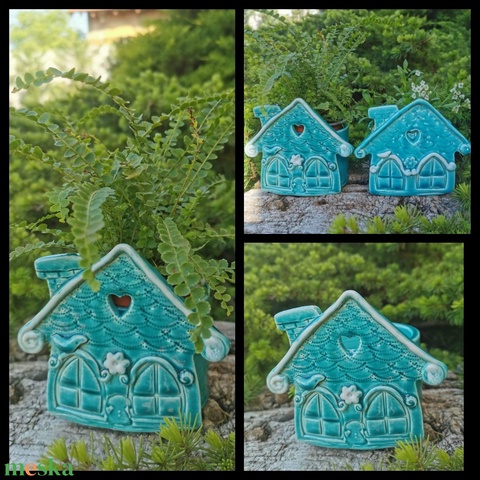 Ültessünk virágot! :) Ezeket az egyedi kis házikós virágtartókat is fehér agyagból szabadkézi formázással készítettem.A második égetés előtt színes mázzal ajándékoztam meg.Száraz virágot illetve élő kis virágot is lehet bele ültetni / ami nem túl sok föld igényű/. Méretei:10x11cm (a legszélesebb részeken). Bele illeszkedő virágcserép átmérője:8 cm átmérőjű.Boltunkban minden alkotás kész termék ezért akár azonnal megvásárolható ..Személyes átvétel : Bp. XXI.ker .Csepelen lehetséges!