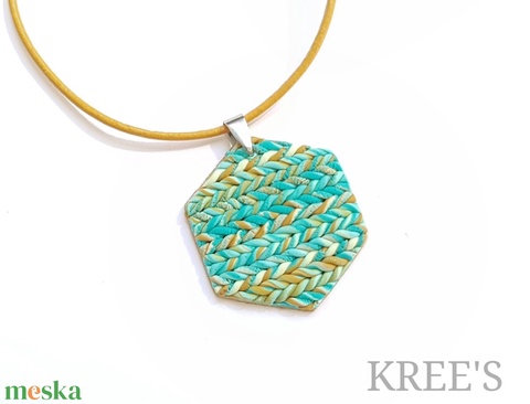 Kék, kötött mintás ékszergyurma nyaklánc