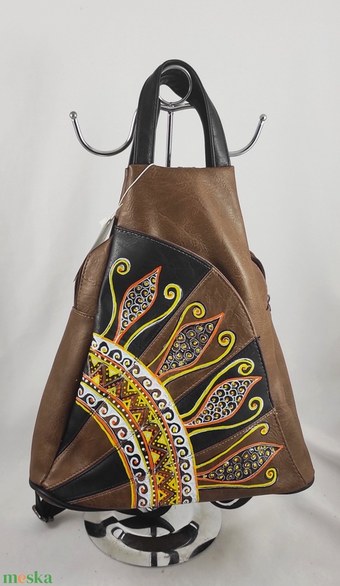 Vera Pelle replika. Masszív műbőr hátitáska, kézzel festett, egyedi mintával!