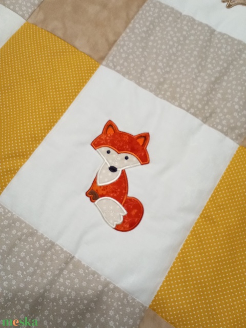Állatos takaró rókával és nyuszival okker és drapp színben