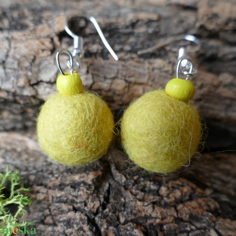 Citrom csepp - nemezelt fülbevaló fa gyönggyel