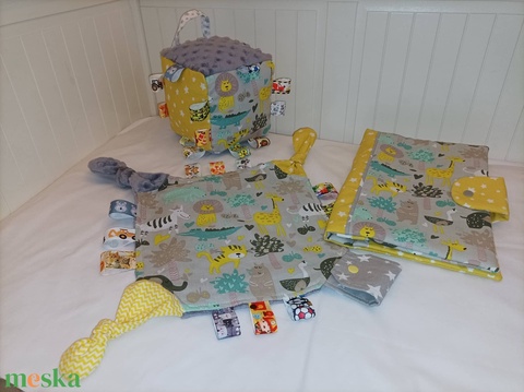 Afrikai állatos-Szürke-sárga babköszöntő szett 3 részes