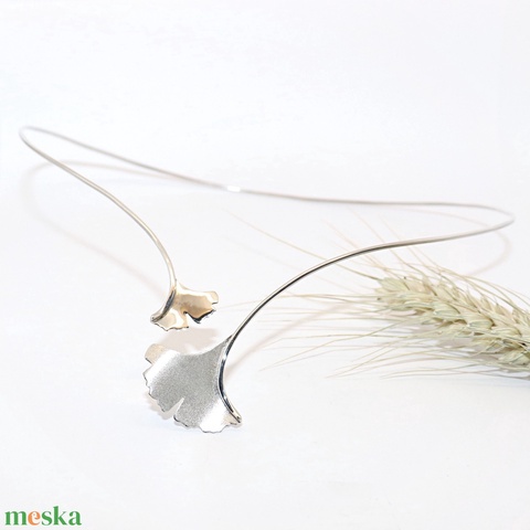 Ginkgo biloba, matt és fényes, női ezüst nyakék (EGK.19)