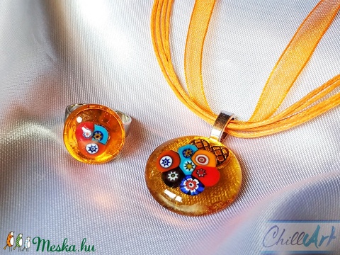 Gyöngyök a mézben! - muránói gyöngyös ékszerszett- Millefiori medál és állítható gyűrű