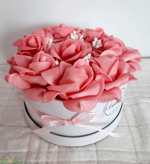 - Anyag/Összetevő kalapdoboz, tűzőhab, polifoam rózsa