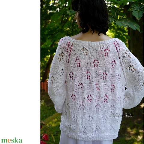 TOBY - exkluzív kézzel kötött csipkemintás nyári kardigán, pulóver / hófehér