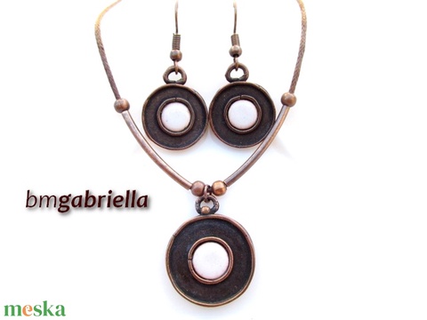 Fehér avar korong - egyedi tervezésű kézműves ékszerszett - tűzzománc fülbevaló, medál