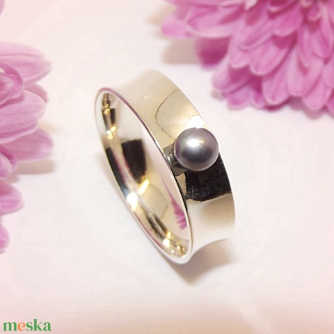 Homorú, szürke igazgyöngyös, női ezüst gyűrű, 61-es méret (VHO.12)