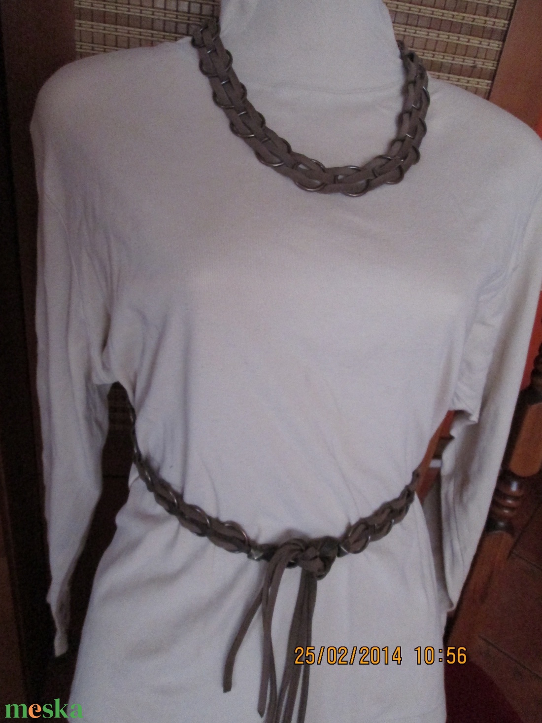 - Anyaga: fémkarika, bőrszál, végzáró, kapocs