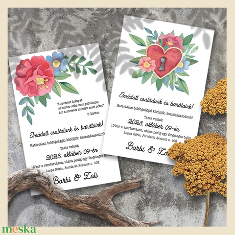 Még sokféle esküvői meghívót és szettet találsz Meska boltomban, itt: