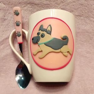 Németjuhász kutya figura mintás bögre gyurma díszítéssel Mikulás Karácsony ajándék