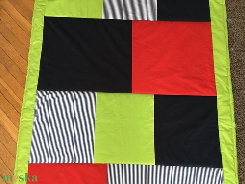 patchwork takaró, falvédő, hengerpárna kék-zöld-piros-csíkos