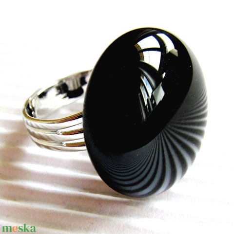 NEMESACÉL! - Éjfekete kerek üveg gyűrű, üvegékszer