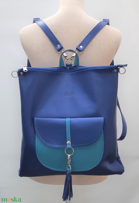 Királykék-türkiz bőr válltáska és hátizsák tárcával City M 012