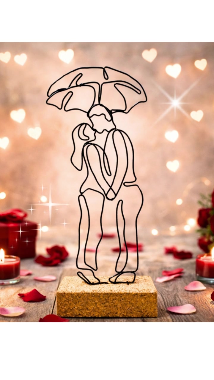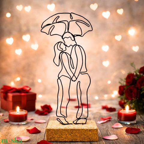 Az első csók - drótból készült szobor / Szerelem - eljegyzési és évfordulós ajándék Valentin napra - Bálint napi ajándék