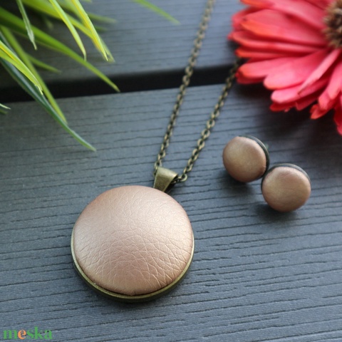 Metál arany - bronz textilbőr fülbevaló és nyaklánc szett