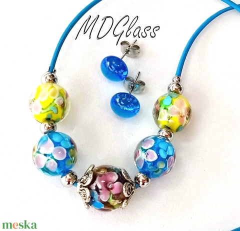 Mezei virágok 1 üvegékszer szett lámpagyöngyös nyaklánc pötty fülbevaló
