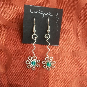Zöld köves virág fülbevaló