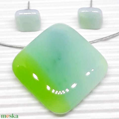 NEMESACÉL - Kék-zöld opál holdkő ombre rombusz üveg medál és fülbevaló, üvegékszer szett