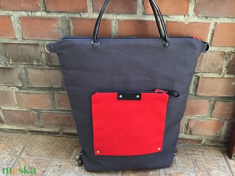 Piros szürke vászontáska, Hátizsák, laptoptáska, iskolatáska, nyári hátizsák. A heveder egy mozdulattal levehető, akkor kézitáskaként használhatod! Az idei nyári divat a hátizsák. Ezt a darabot kérésre készítettem, de neked is elkészítem, ha tetszik, akár más színből is!. Márete: magassága 40 cm szélessége felül:38 cm alul :26 cm talpszélesség:6 cm Ha más színt, vagy méretet szeretnél, írj és megbeszéljük