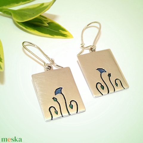 Himalájai kék pipacsos téglalap, beakasztós, női ezüst fülbevaló pár (EPK.27)