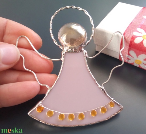 Angyal üvegdísz, ablakdísz púderrózsaszín