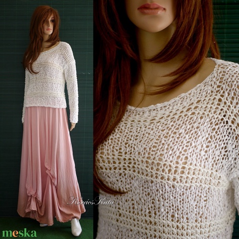 ORION - bohém fairy kézzel kötött pamut pulóver