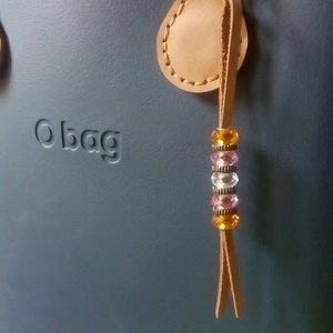 - Anyaga: bőrszál, kis karabiner, ppandoragyöngy, fémgyöngy